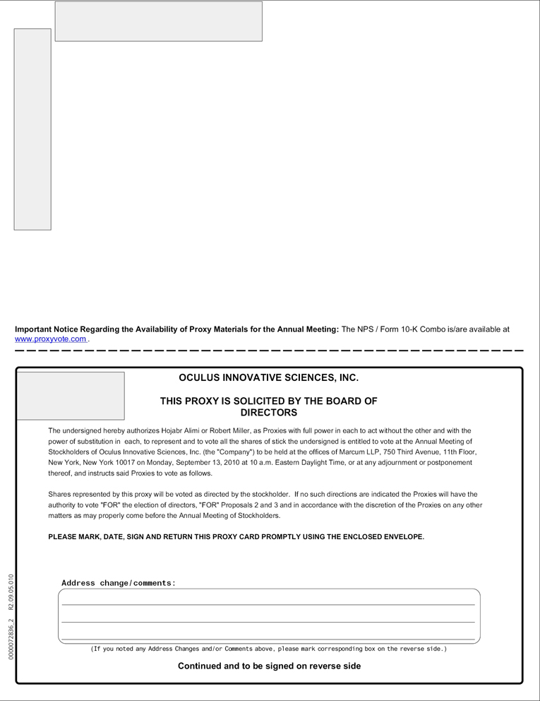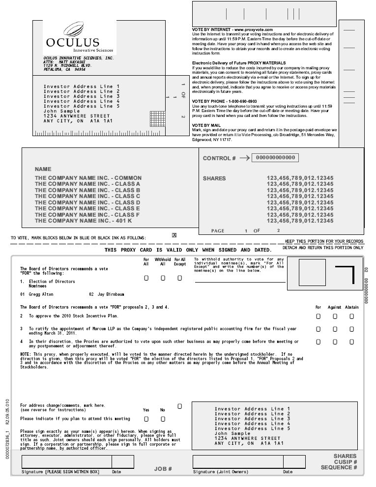 cordially invited to attend the 2010 Annual Meeting of Stockholders of Oculus