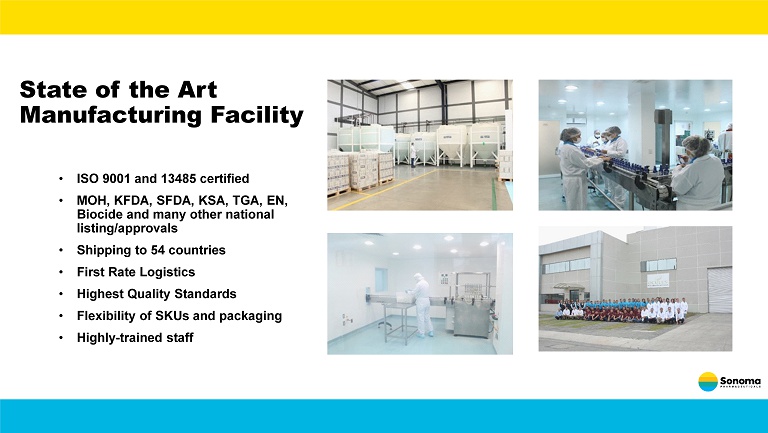 State of the Art Manufacturing Facility • ISO 9001 and 13485 certified • MOH, KFDA, SFDA, KSA, TGA, EN, Biocide and many other national listing/approvals • Shipping to 54 countries • First Rate Logistics • Highest Quality Standards • Flexibility of SKUs and packaging • Highly - trained staff