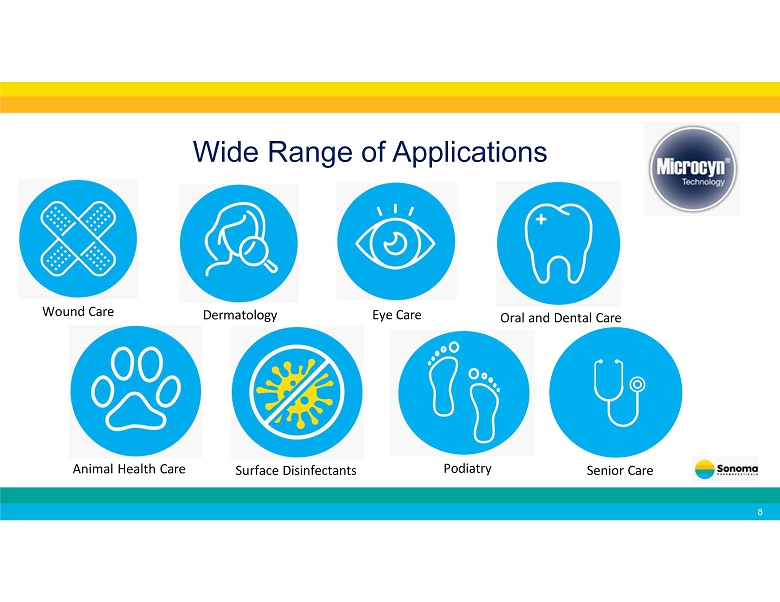 Wide Range of Applications Wound Care Dermatology Eye Care Oral and Dental Care Animal Health Care Surface Disinfectants Podiatry 8 Senior Care