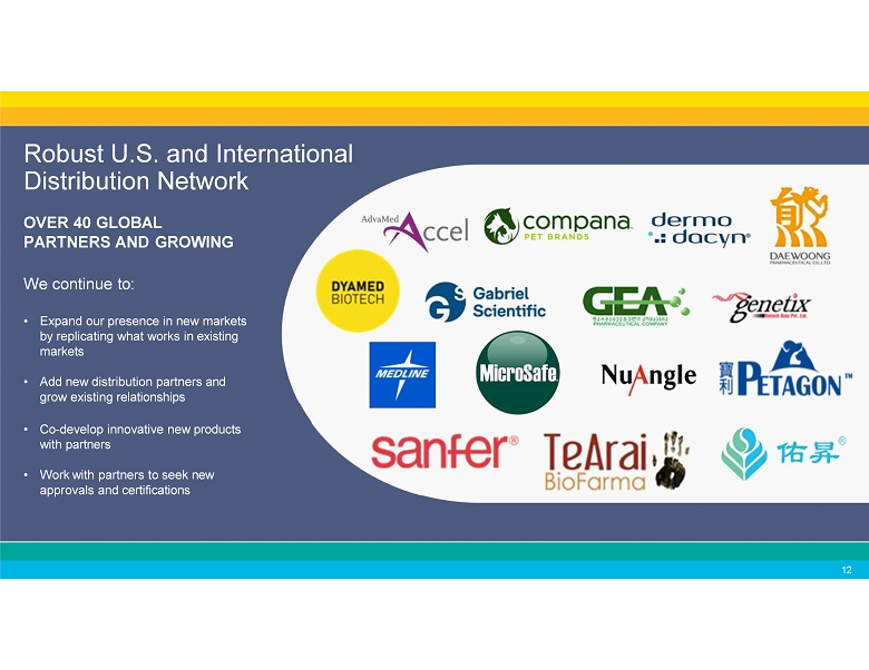 Robust U.S. and International Distribution Network OVER 40 GLOBAL PARTNERS AND GROWING We continue to: • Expand our presence in new markets by replicating what works in existing markets • Add new distribution partners and grow existing relationships • Co - develop innovative new products with partners • Work with partners to seek new approvals and certifications 12
