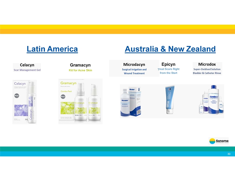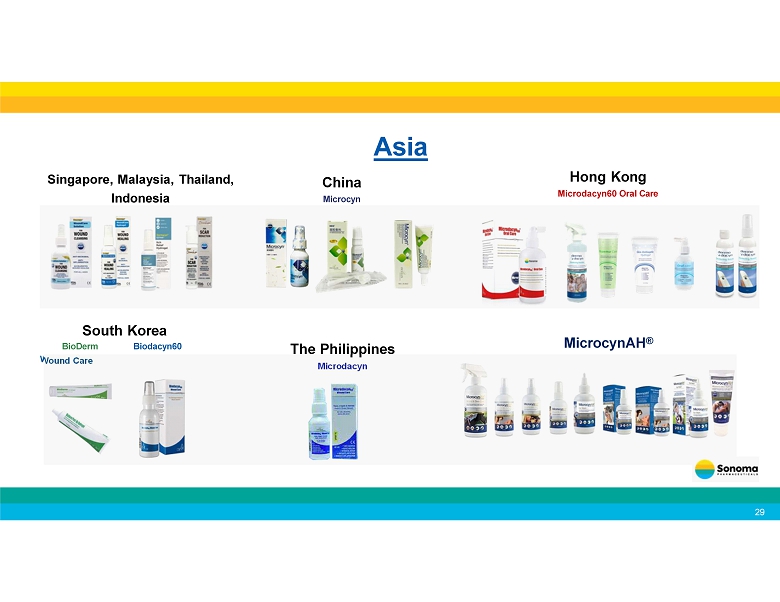 Singapore, Malaysia, Thailand, Indonesia Wound Care South Korea BioDerm Biodacyn60 Wound Care Hong Kong Microdacyn60 Oral Care China Microcyn The Philippines Microdacyn MicrocynAH ® Asia 29